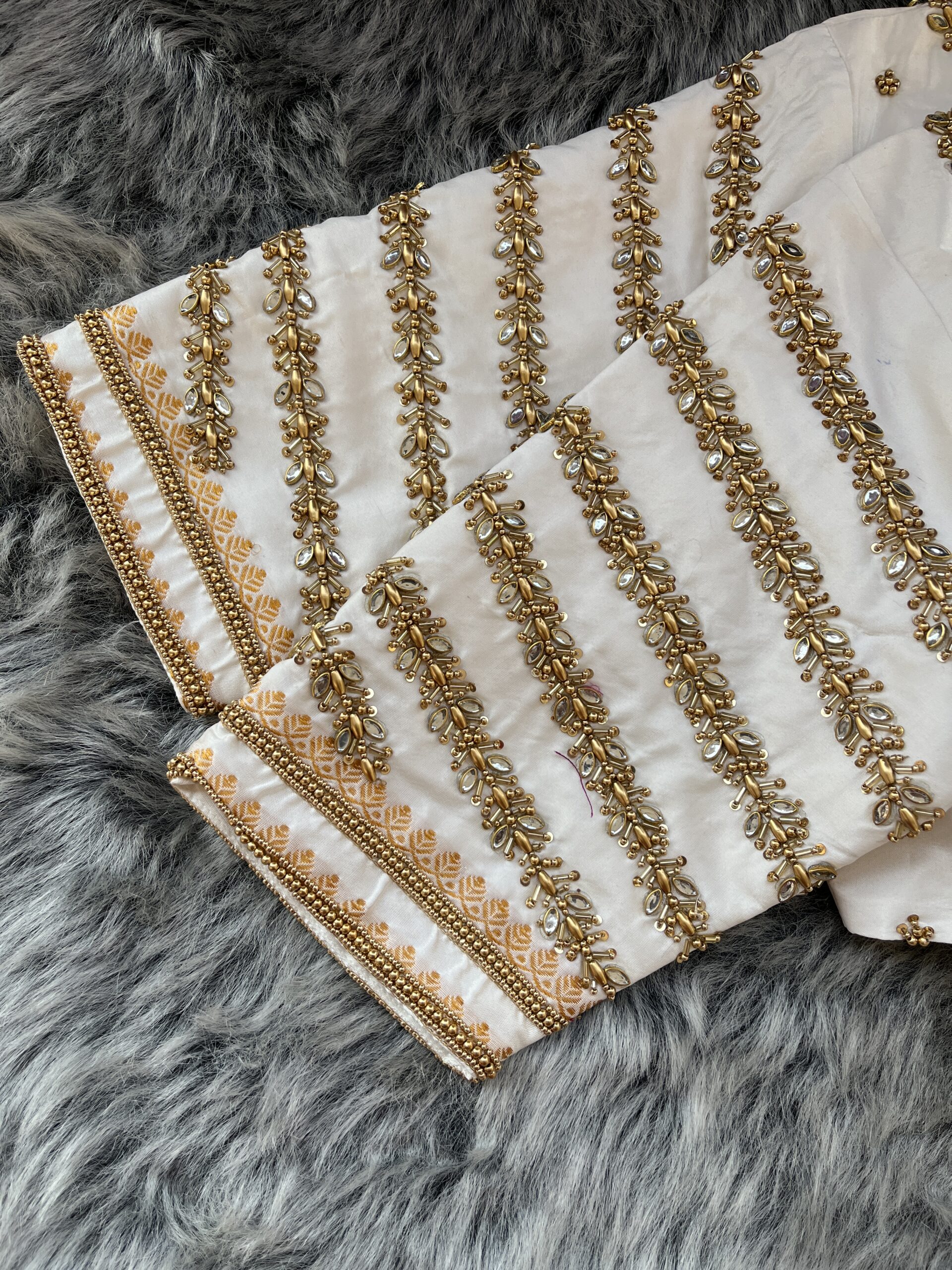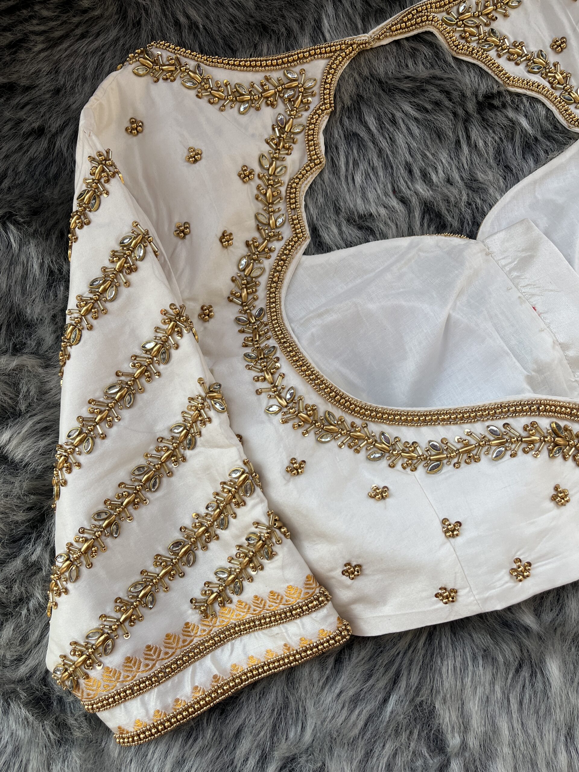 This stunning Aari work blouse design features detailed hand embroidery and elegant finishing, making it ideal for bridal wear and festive outfits. Save this design for your next saree look inspiration.