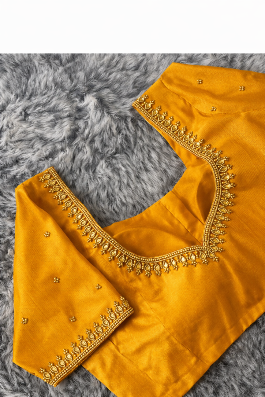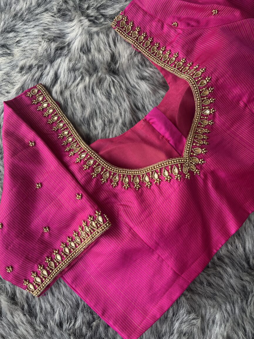 Perfect for brides and those looking for custom hand embroidered blouse designs, this piece reflects the beauty of traditional Indian craftsmanship with a modern finish.