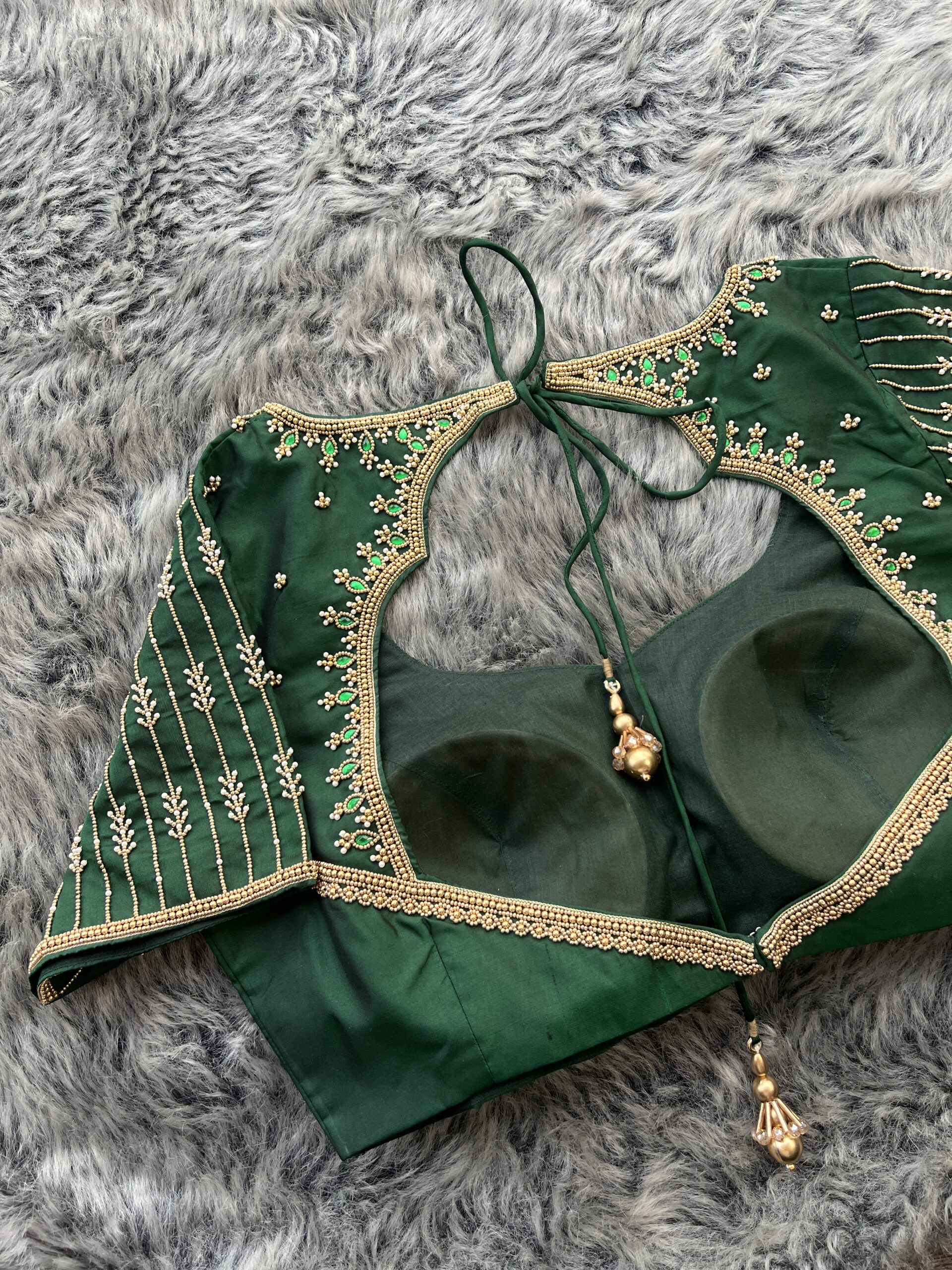 Bridal Aari Work Blouse in Bottle Green