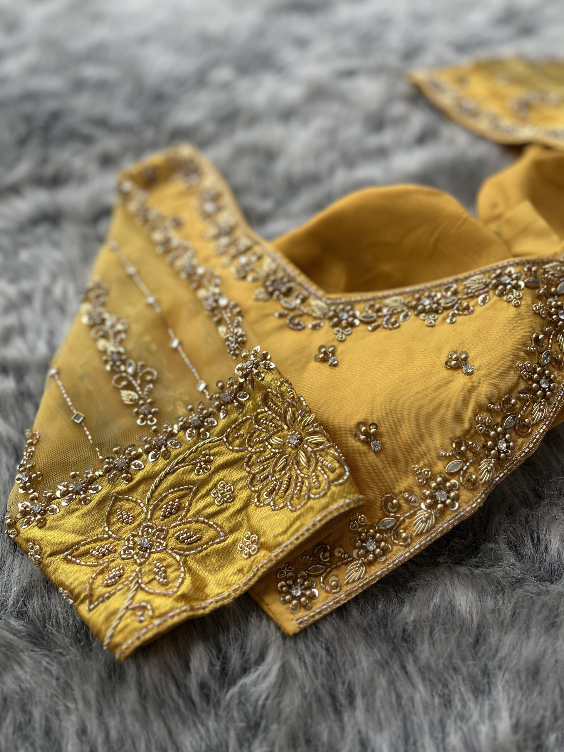 Fancy Net Sleeve Aari work Bridal Hand Embroidery Blouse